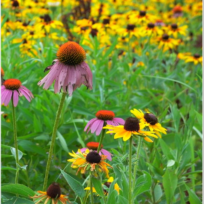 Flowers and native grasses act as a filter and slow erosion.