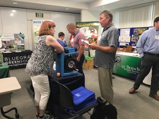 Participants peruse the exhibit hall and talk air quality with Roberta Burnes. Photo by Carrie Searcy.