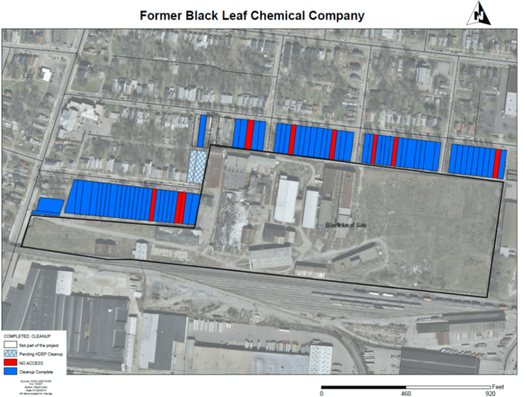 In 2010, the Kentucky Department of Environmental Protection began the state’s largest and most expensive urban residential cleanup of toxic chemicals to date. Elevated concentrations of pesticides and PAHs — polycyclic aromatic hydrocarbons — had been detected in the soil around the former Black Leaf Chemical site in Louisville.